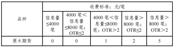 表1:原木期货申报费标准表