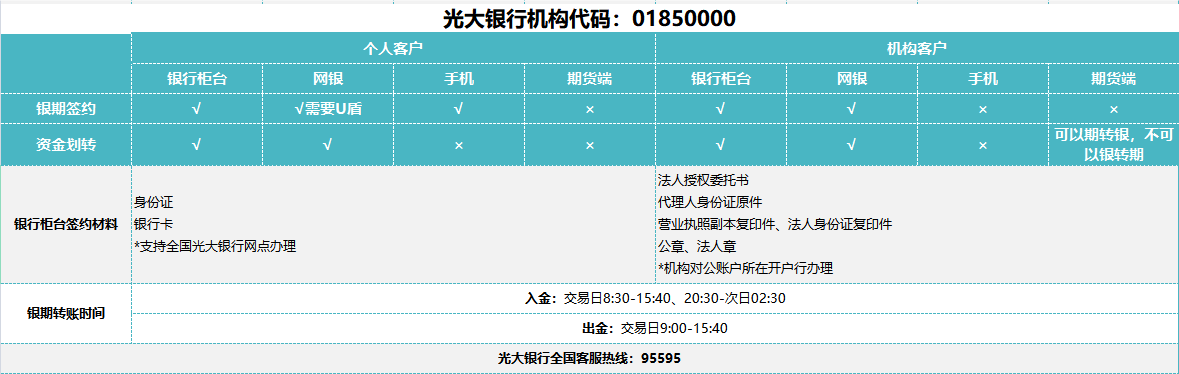 光大银行机构签约/解约