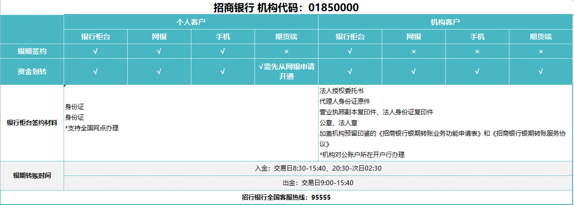 招商银行机构客户银期业务有关办理方式: